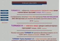 TORNADO III — профессиональная игровая шашечная программа гроссмейстерского уровня. Поддерживаются три родственных вида шашек — русские, бразильские, пул-чекерс. Программа TORNADO III предназначена как для любителей, серьезно интересующихся шашечной игрой, так и для профессионалов. Для шашистов, изучающих игру, программа станет надежным консультантом и удобным спарринг-партнером, а в руках опытных мастеров программа превратится в мощный инструмент для аналитической и исследовательской работы в шашках. Автор — Михаил Глизерин (Россия)
