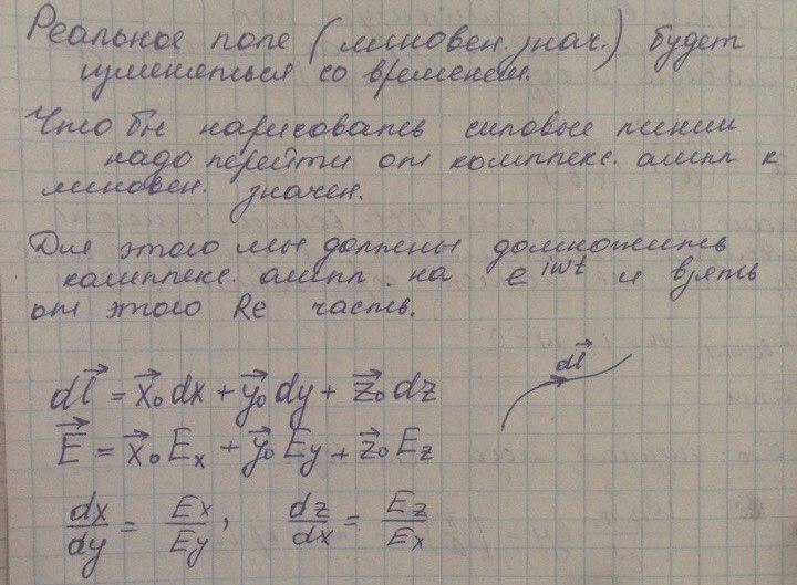 Чтобы построить картины силовых линий нужно перейти от комплексных амплитуд к мгновенным значениям полей и выбрать фиксированный момент времени, для которого будет построено изображение.