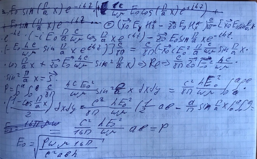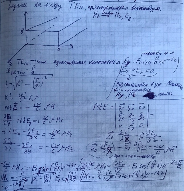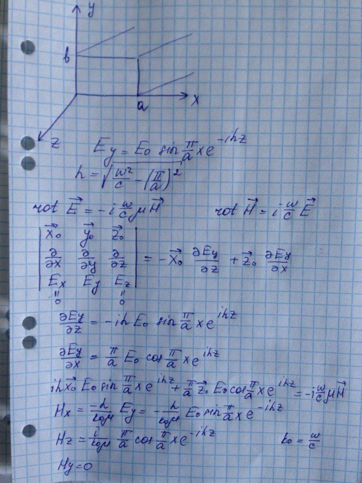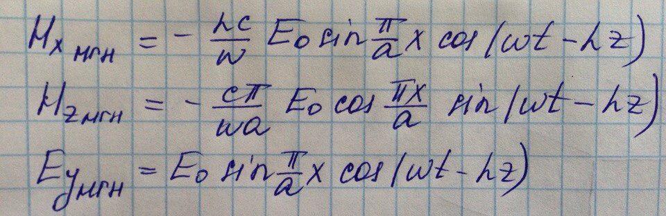 За исходное выражение лучше взять компоненту Ey (выражение для которой было представлено выше) и через него выразить остальные компоненты поля. Для этого подставим Ey в уравнения Максвелла.