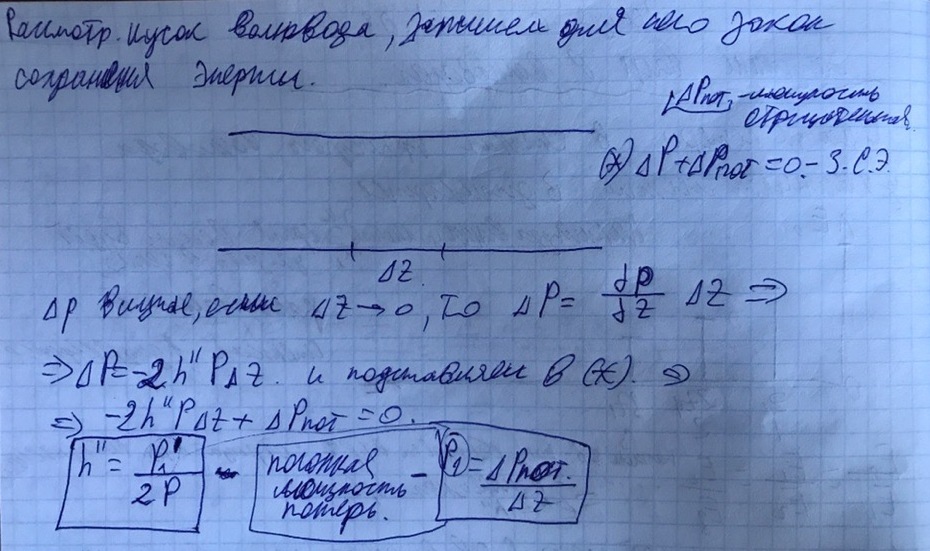 Рассмотрим участок волновода длиной dz и запишем для него закон сохранения энергии.