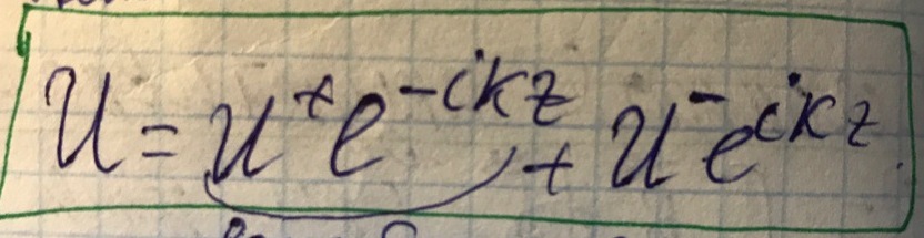 Знак "+" отвечает за компоненту напряжения, направленную вдоль оси z, а знак "-" отвечает за компоненту напряжения, направленную против оси z. Будем работать с волной направленной в положительном направлении z.