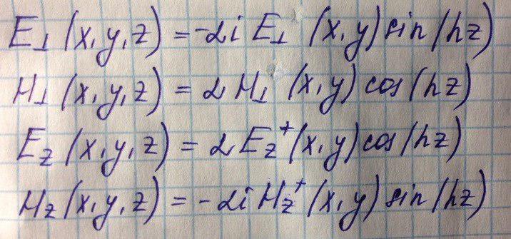 Значит для любого волновода закороченного с одной стороны, зная структуру любой моды бегущей волны, можно получить выражения для полей в резонаторе.