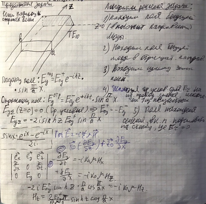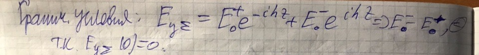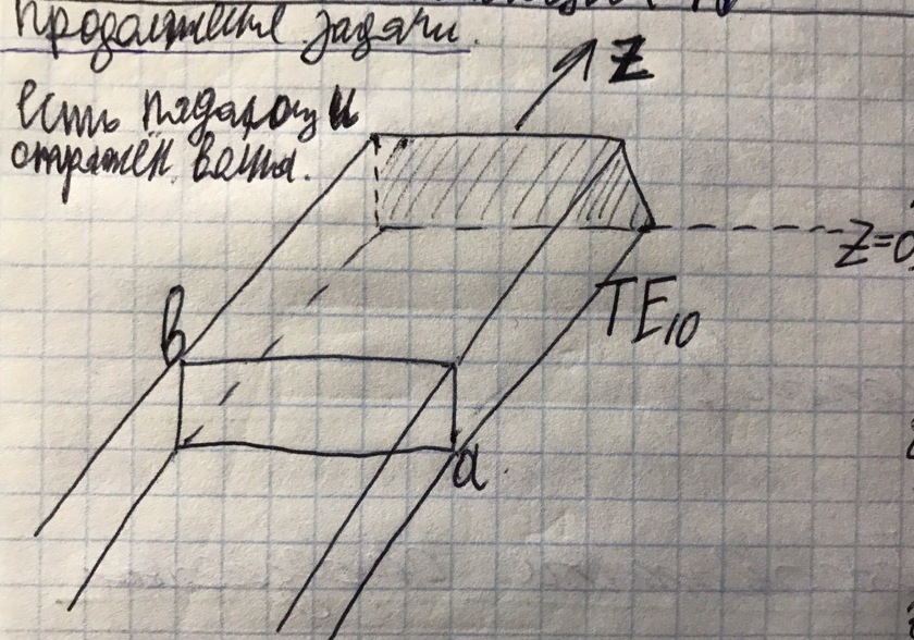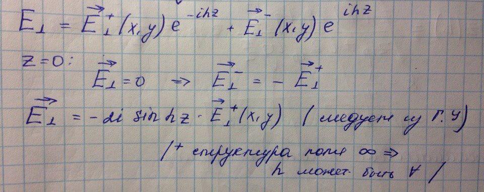 Рассмотрим граничные условия при z=0 и поля внутри данного волновода: