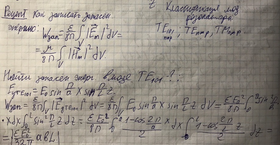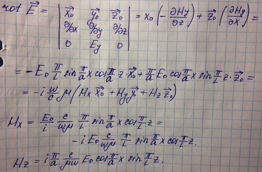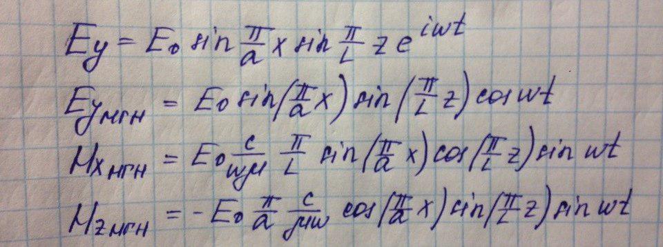 Выразим компоненты поля, зная выражение Ey для прямоугольного резонатора моды TE101