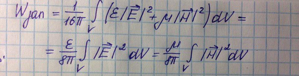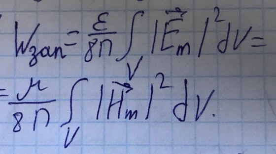 То есть запасенную энергию можно вычислить через комплексные амплитуды магнитного и электрического полей.