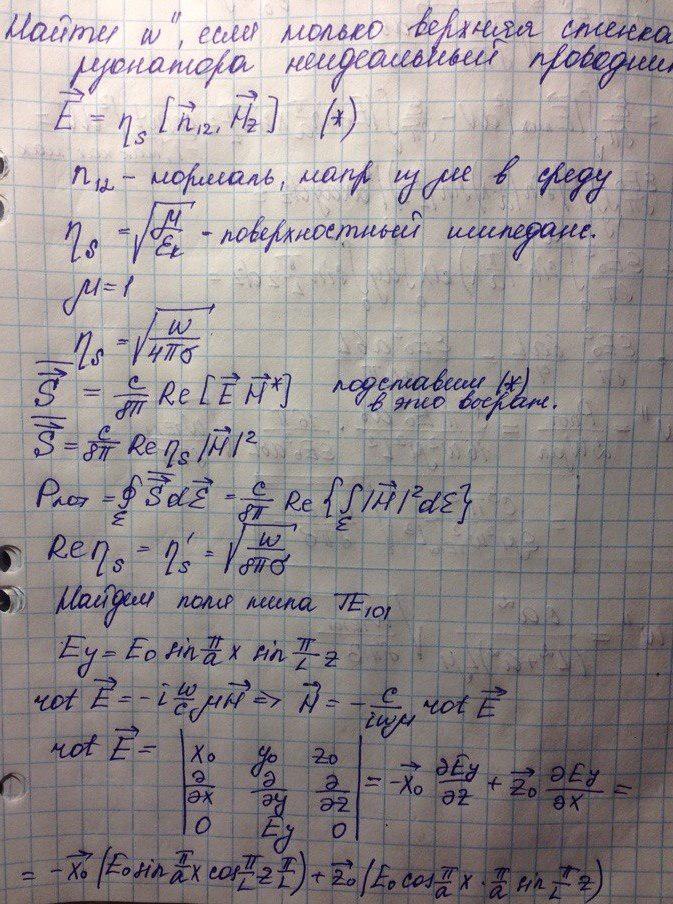 Определим декремент затухания для моды TE101 резонатора с размерами a, b, L, у которого верхняя стенка не идеально проводящая.