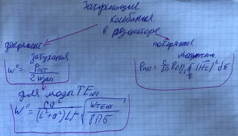 Исходя из полученных формул определим декремент затухания в резонаторе.