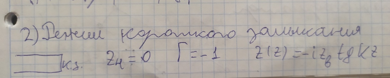 2. Режим короткого замыкания (Случай когда линия закорочена). При данном режиме работы импеданс нагрузки равен нулю, соответственно коэффициент отражения равен минус единице, а из формулы пересчета импедансов следует: