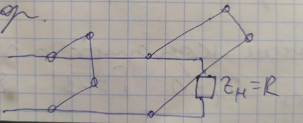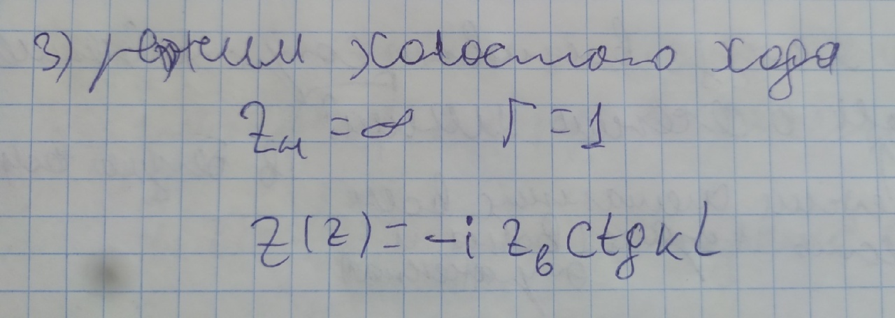 3. Режим холостого хода. При данном режиме импеданс нагрузки равен бесконечности, соотвественно коэффициент отражения равен единице, а импеданс в сечении по формуле пересчета импедансов равен: