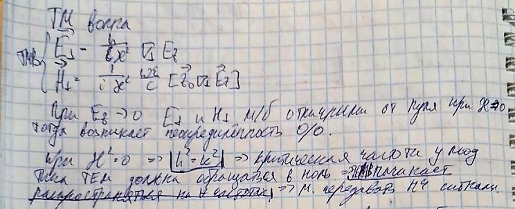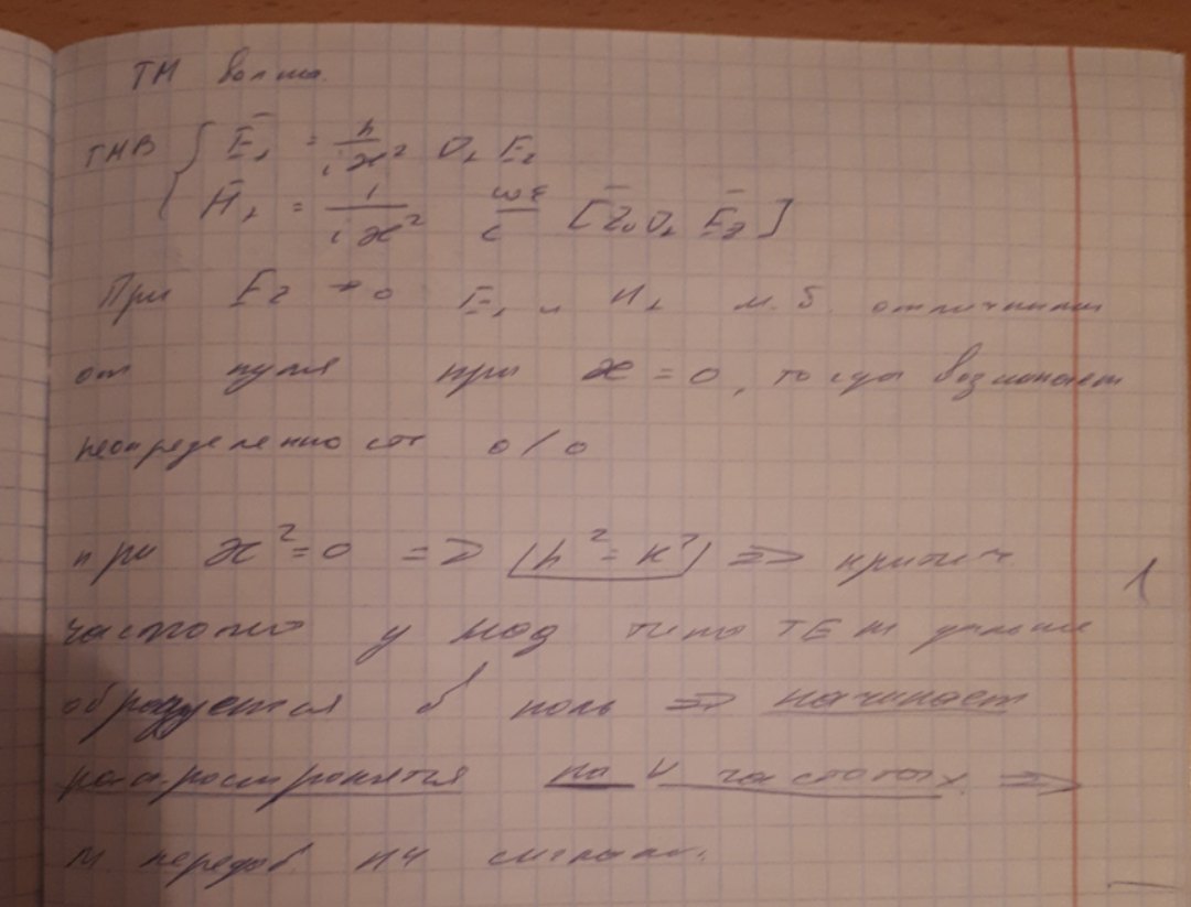 Возьмем, например, типа ТМ и попробуем продольную компоненту напряженности электрического поля устремить к 0.