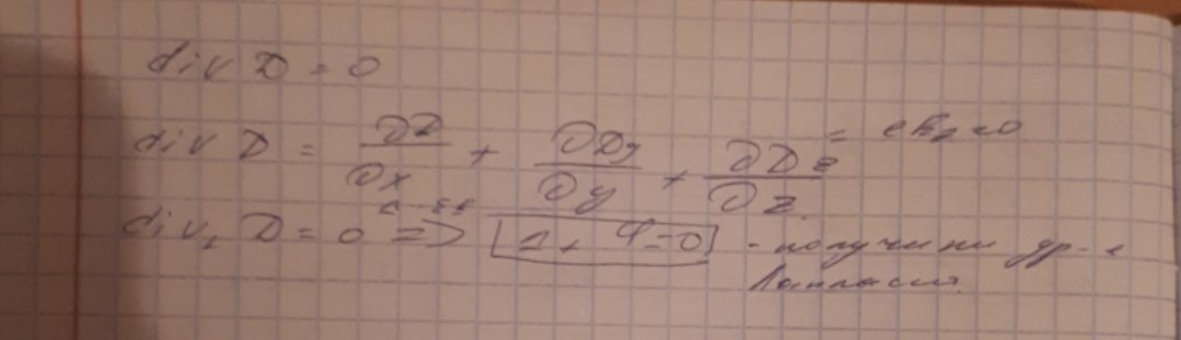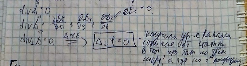 Нетрудно заметить, что полученное уравнение Лапласа отличается от случаев в статике только лишь в том, что здесь лапласиан берется по двум координатам (а в статике по трем).