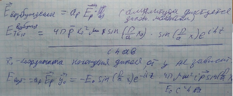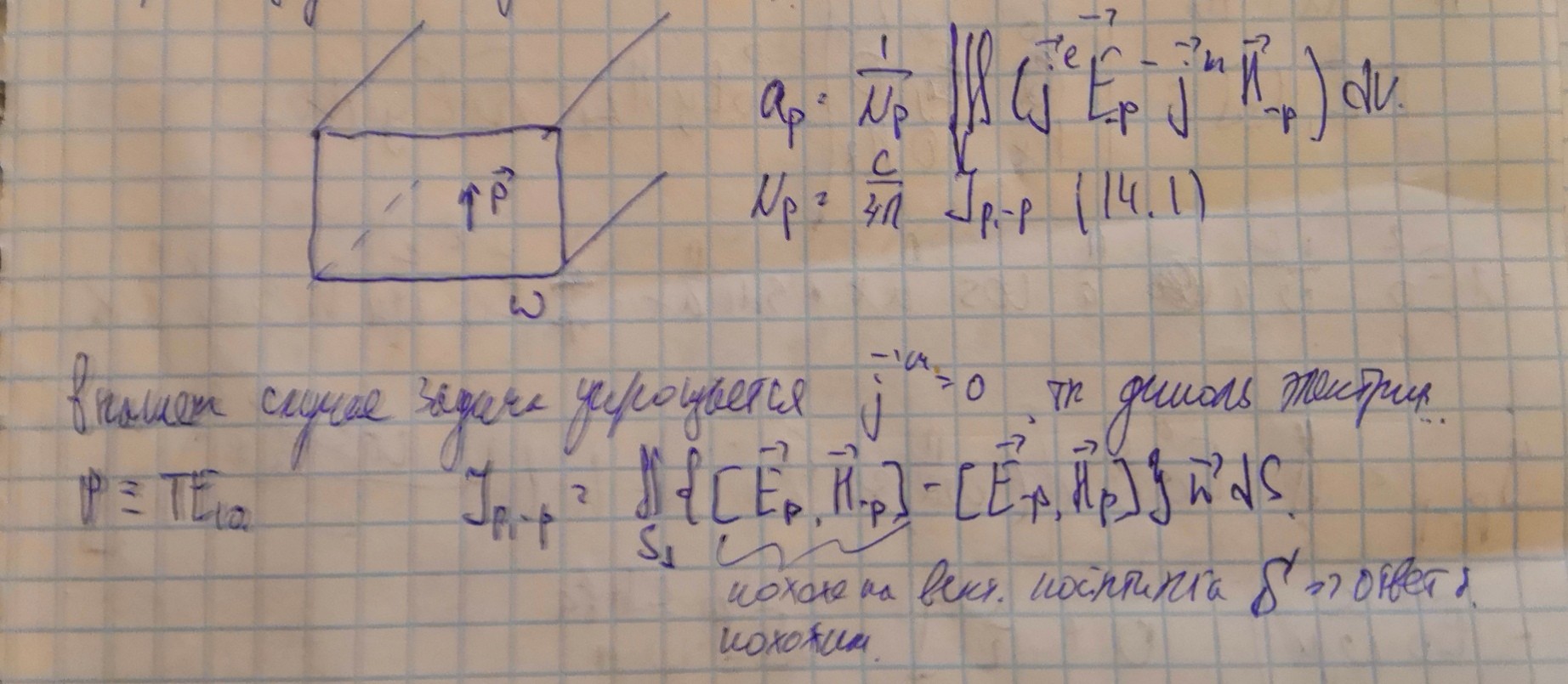 Рассмотрим пряммоугольный волновод с электрическим диполем внутри, имеющим дипольный момент р.