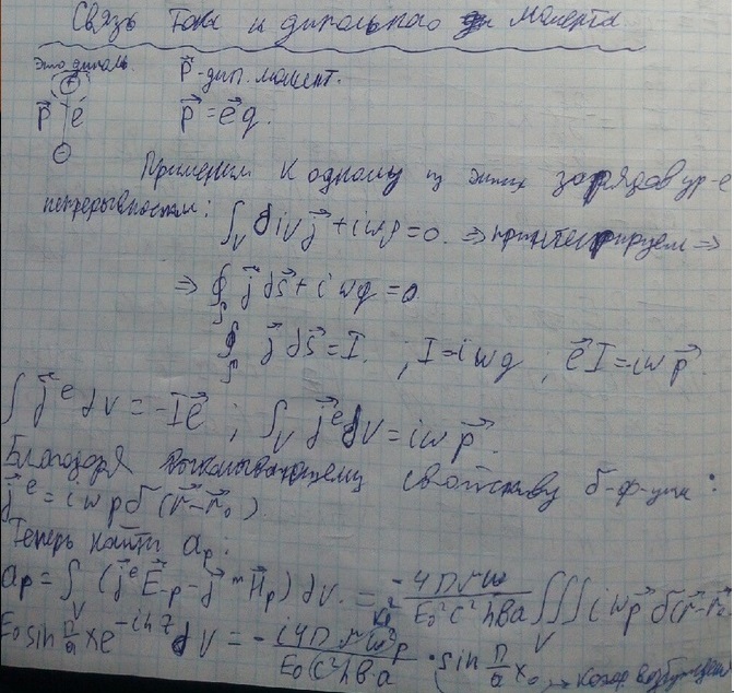 Однако, стоит отметить, что в случае магнитного диполя интеграл считался бы немного по другому.