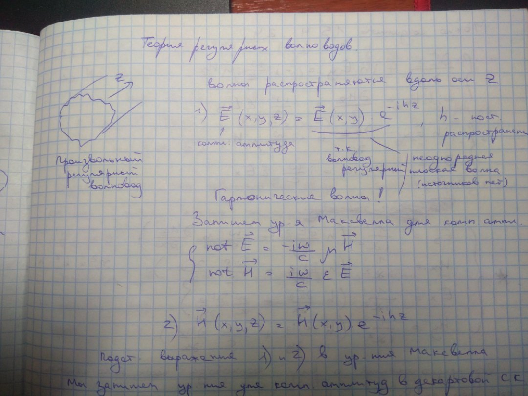 Рассмотрим произвольный регулярный волновод, волны распространяются вдоль оси z. Запишем уравнения Максвелла для комплексных амплитуд