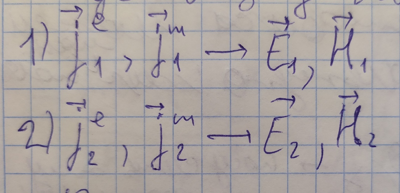Пусть в нем заданы два распределения тока и соответствующих им распределения поля.