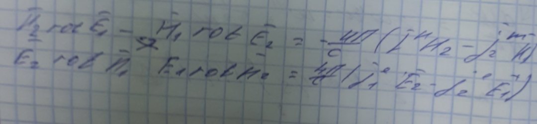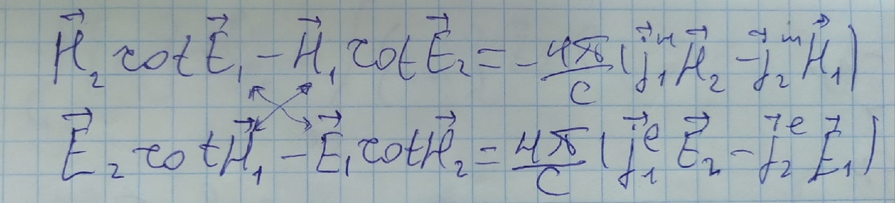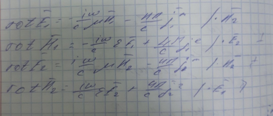 Запишем уравнения Максвелла, в которое входят электрические и магнитные токи. Далее скалярно умножим их на соотвествующие поля.