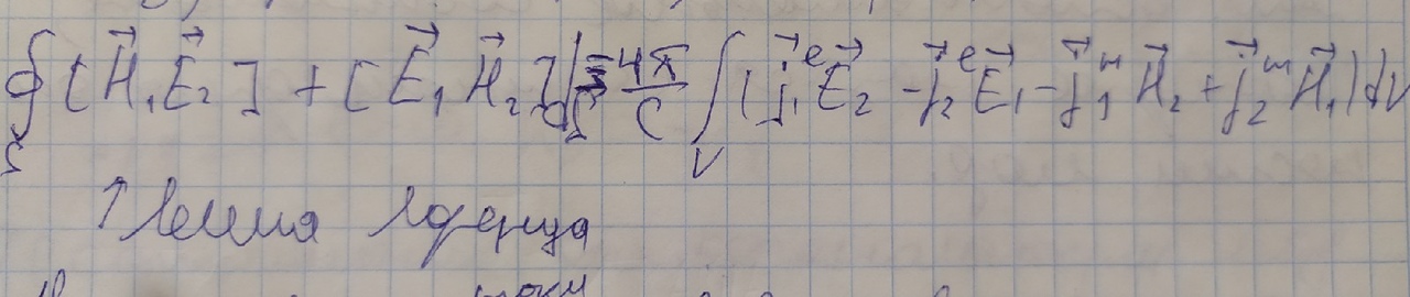 Проинтегрируем полученное выражение по произвольному объему V, ограниченному поверхностью S и воспользуемся теоремой Гаусса-Остроградского, получая тем самым лемму Лоренца в интегральной форме.