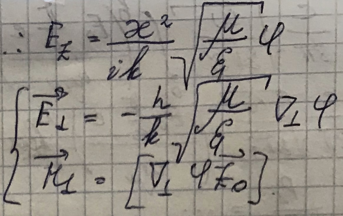 2) Записываем ТЕМ поле с аналогичной зависимостью от поперечных координат.