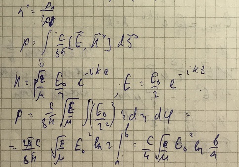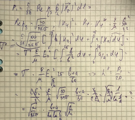 Дан коаксиальный волновод, у которого стенки, и внутренние, и внешние, - не идеально проводящие. Найдём коэффициент затухания h''.
