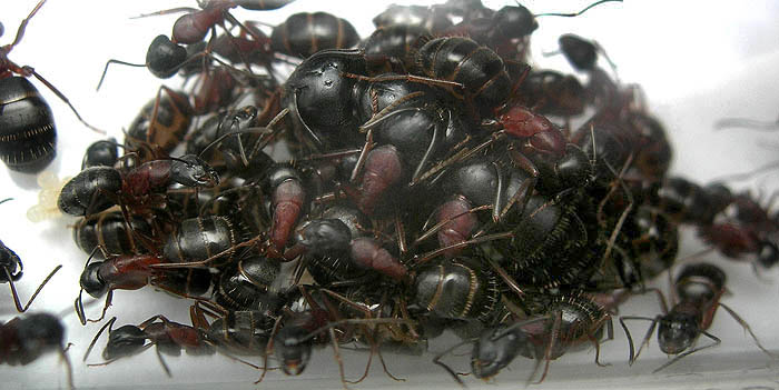 Яйца и мелкие личинки, не успевшие развиться, приобретают желтоватый оттенок. В это время нужно постепенно снижать температуру, а затем помещать колонию вместе с формикарием в прохладное место (это может быть как погреб, так и ваш холодильник - отделение для овощей). Муравьи не будут питаться, они полноценно отдохнут.